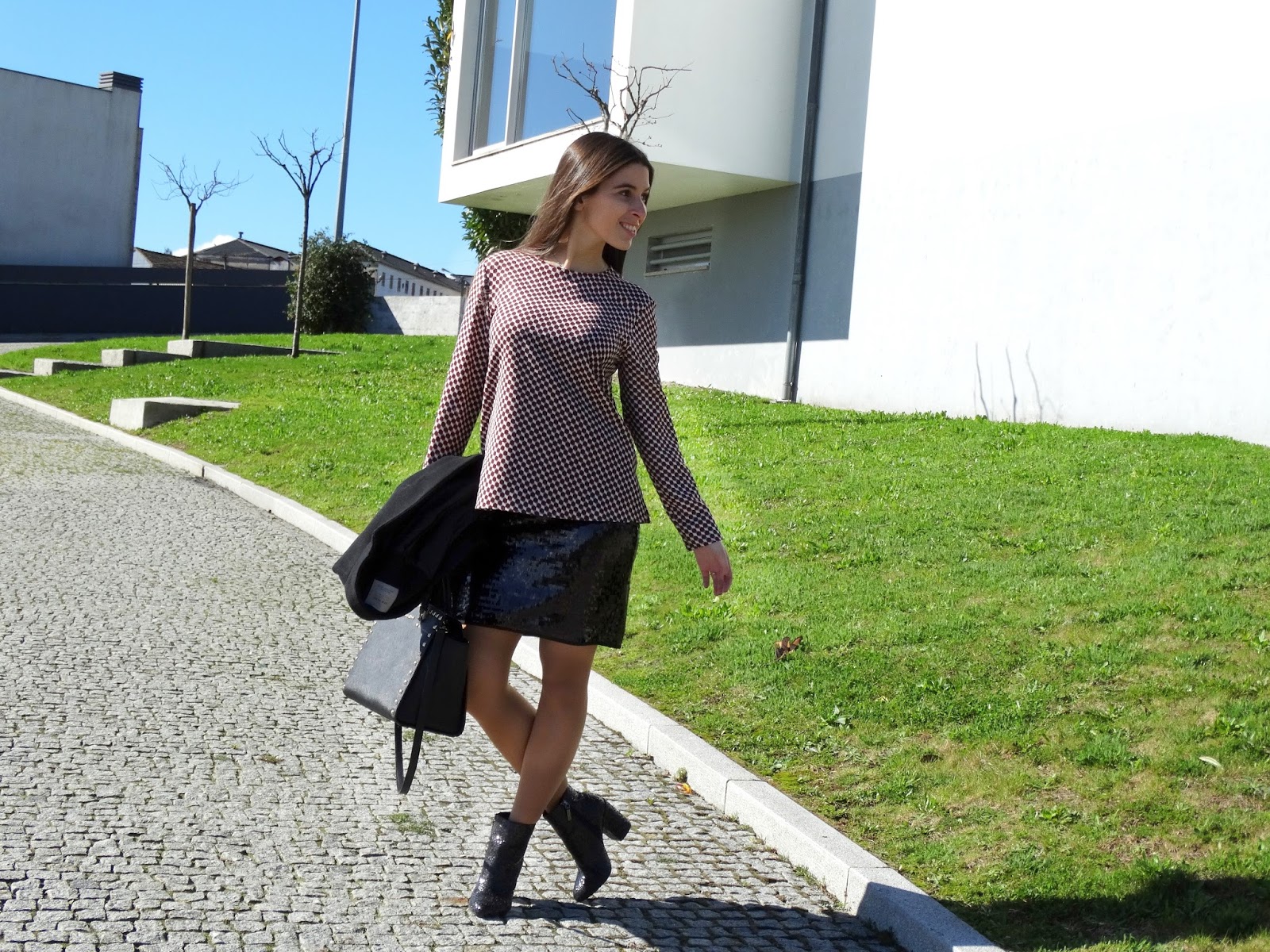 Pois bem, hoje decidi ir para a secção das lantejoulas e dos brilhos, afinal de contas não são exclusivos de festas e servem perfeitamente para o dia-a-dia. Já tinha esta saia algum tempo mas não tive oportunidade (e vontade, diga-se de passagem) de a usar. Estes botins foram os primeiros que surgiram na ideia e o resto se compôs. Adorei o outfit, diferente mas super prático para um dia de férias - sim porque esta semana estou de férias, soa mesmo bem f é r i a s - e vai ser dedicada ao Blog!